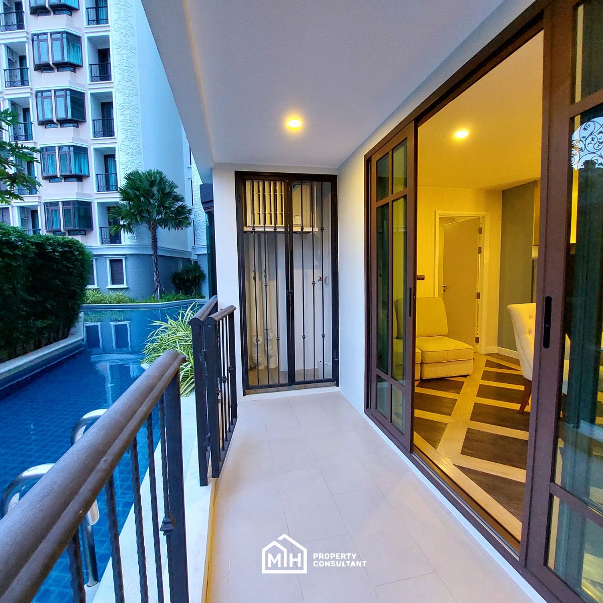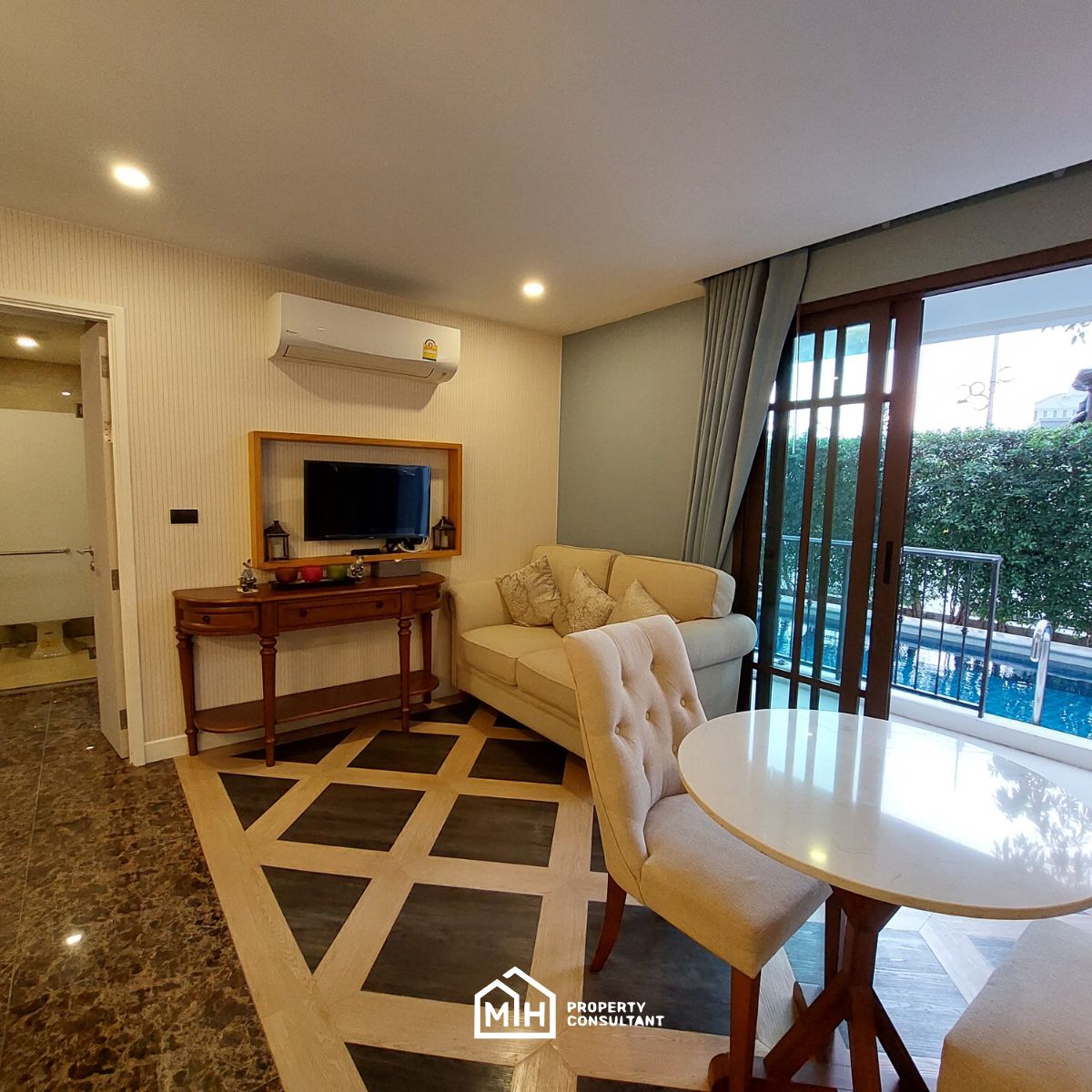 This 2-bedroom, 2-bathroom condo (77 SQ.M.) sits on the 1st floor with direct pool access and a beautiful, well-decorated interior.